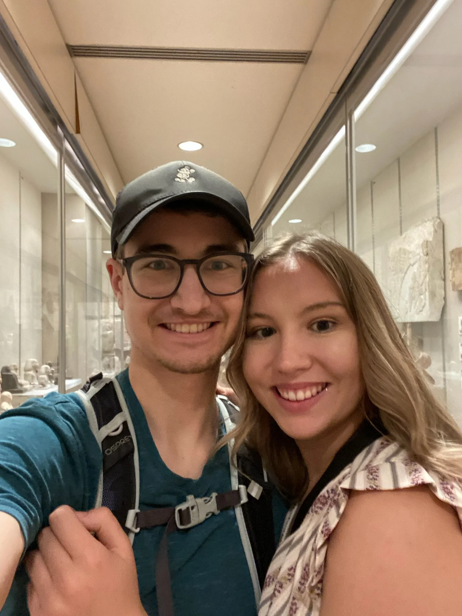 Dawson and Katrina met in the summer of 2020, though they were unaware of it. Katrina led Dawson's first-year business orientation as they navigated the unfamiliar world of social distancing and video calls.